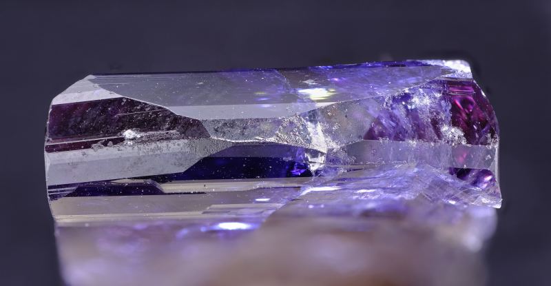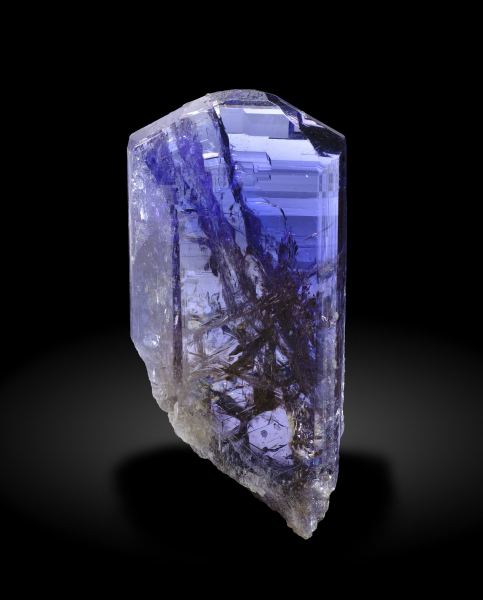 Obtained at Munich 2022Zoisite crystal (tanzanite variety) with very well defined faces and edges, very transparent and lustrous terminations, gem quality, and an excellent intense blue color with violet shades. The transition between the dichroic tones of the crystal indicates that it has not suffered heat treatment.