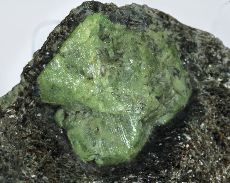 Cyclic twin ('sixling') of Chrysoberyl with sharp crystal forms, of a uniform green color, on Phlogopite matrix.Novello Mine, Masvingo (Fort Victoria), Masvingo District, Masvingo Province Zimbabwe