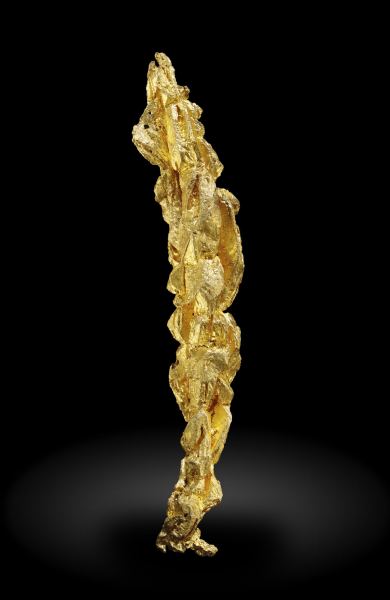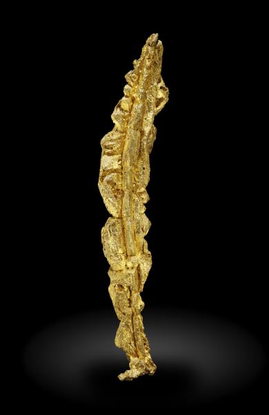 Parallel and stylized growths of octahedral Gold crystals with very distinct spinel law twinning.The specimen has been carefully analyzed and we will send a copy of the analysis to the buyer.