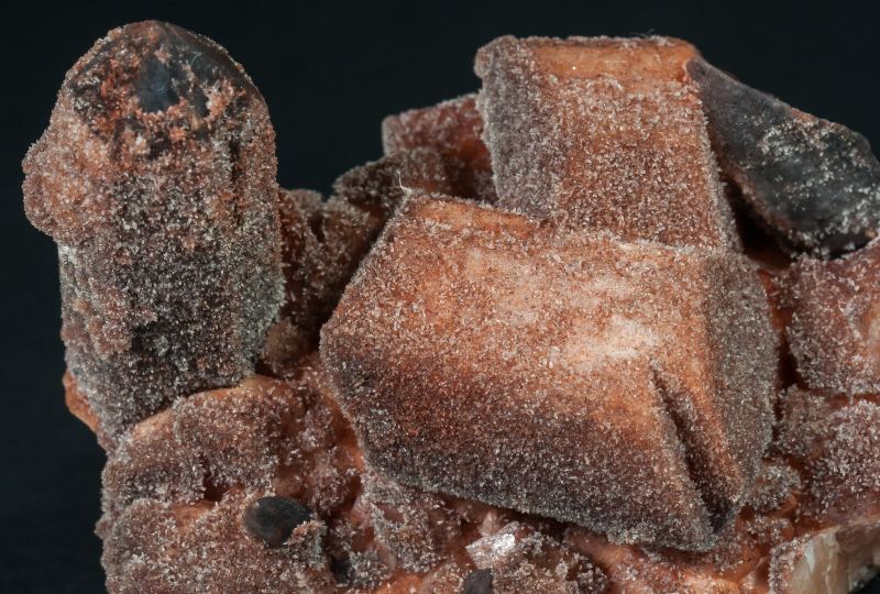 Group of Microcline crystals with a short prismatic habit, with good terminations, reddish color, accompanied by Quartz crystals (smoky variety).The specimen comes from a very unusual find made in Aouli, where the presence of feldspars was unknown before.