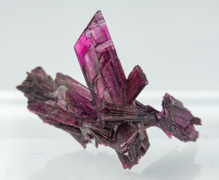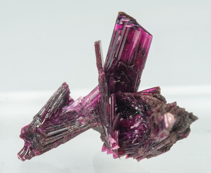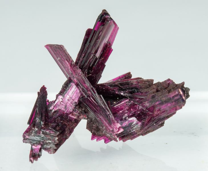 Very aerial group of very sharp Erythrite crystals, doubly terminated, between transparent and translucent, with good luster and an intense mauve color.Bou Azzer mining district, Drâa-Tafilalet Region Morocco