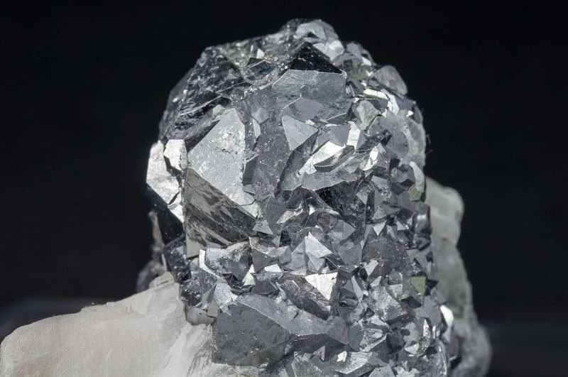 Stalactitic growth of a group of cubo-octahedral Skutterudite crystals with very sharp and lustrous crystal forms. The group, very aerial on its matrix is a Moroccan classic.Bouismas Mine, Agdz, Bou Azzer mining district, Zagora Province, Drâa-Tafilalet Region Morocco