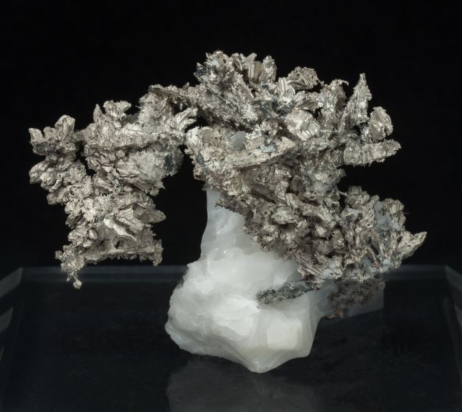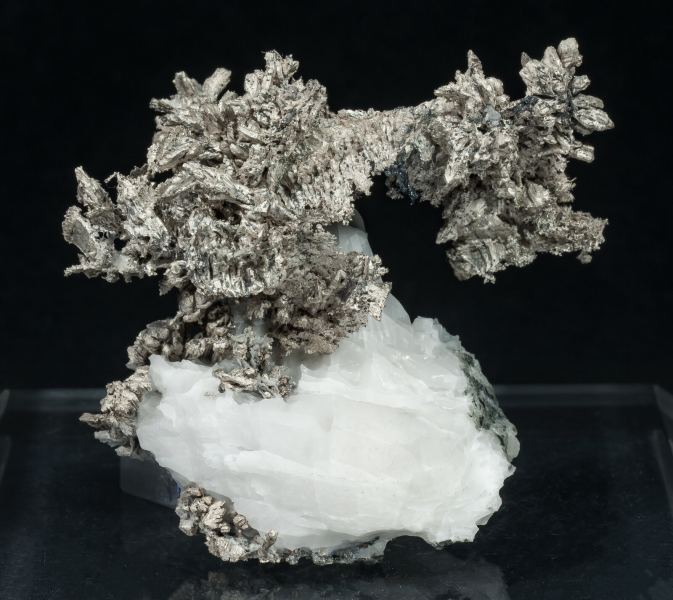 Very aerial arborescent growth of Silver, with good luster and sharp crystal forms, associated with small crystals of Safflorite with blackish tones and Löllingite, on a matrix of Calcite. Very elegant and of great quality. This specimen, from a very recent find last year, has been analyzed and we will send a copy of the analysis to the buyer.Bouismas Mine, Agdz, Bou Azzer mining district, Zagora Province, Drâa-Tafilalet Region Morocco (2022)