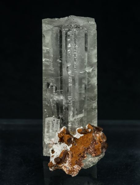Transparent cyclic twin of Aragonite, lustrous and colorless, with a little matrix of ignimbrite with Quartz crystals (hematoidal variety). The specimen comes from finds made in Mamsa in April 2022.Mamsa, Sidi Ayad (Sidi Ayed), Boulemane Province, Fès-Meknès Region Morocco (04/2022)