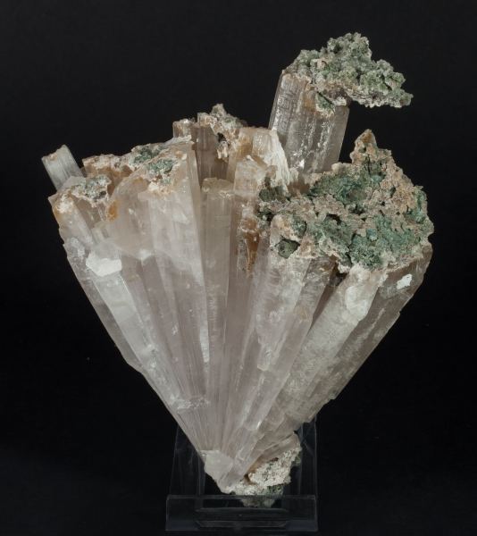 Obtained at Ste. Marie 2022Group on matrix of large prismatic crystals of Aragonite. They are very elongated, translucent, shiny and colorless.