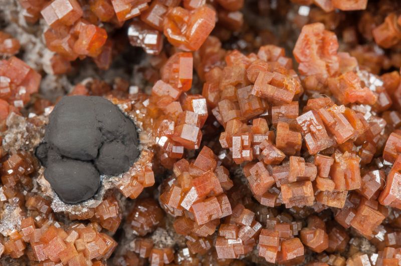 Vanadinite with manganese oxides and Quartz