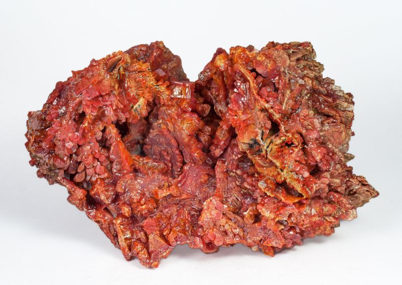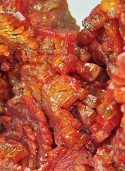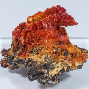 A floater piece with very good size of parallel growths and polycrystalline forms of skeletal Vanadinite crystals, translucent and with an intense and uniform color.Unusual quality for the locality.
