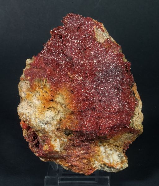Coatings of Descloizite microcrystals on matrix, with an extraordinary luster and a color between red and deep garnet-red.The specimen, of high quality due to its extraordinary color, comes from the Moutet collection, from Marseille. We will send the buyer, together with the specimen, a label from the prestigious Deyrolle house in Paris where Moutet bought it many years ago.