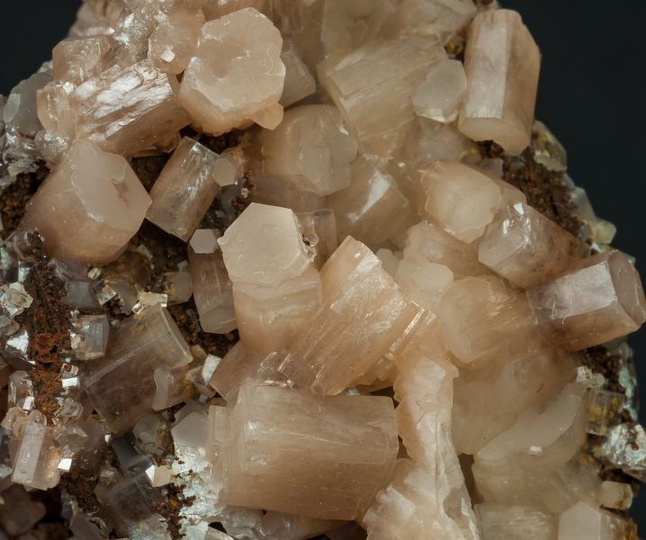 Pyromorphite crystals with a short prismatic habit, many of them doubly terminated, translucent, very light brown in color and on matrix.A good German classic that is accompanied by an old label from the famous crystallographer Carl Hinze, which we will send to the buyer.