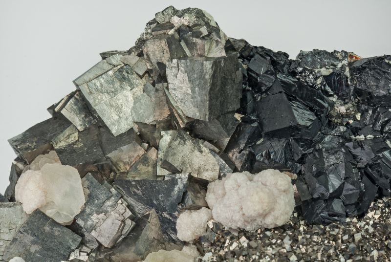 Calcite epitactic Rhodochrosite, Sphalerite, Pyrite