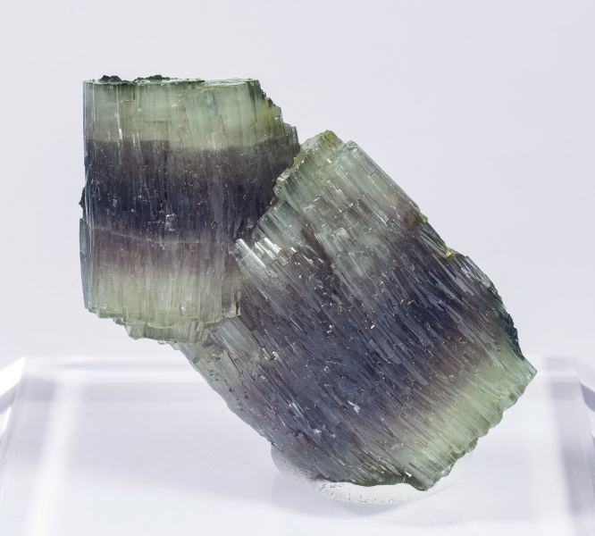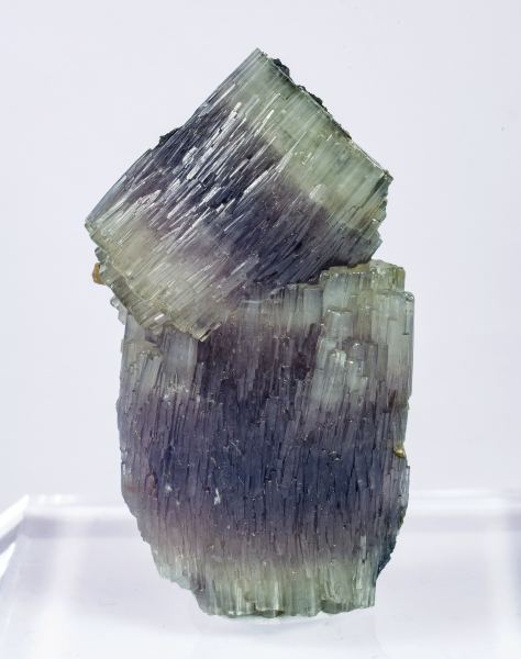 Two doubly terminated Fluorapatite crystals with very well defined parallel growths, with recrystallization and contact zones on the back, without breakage, translucent, lustrous, and with color zoning, more intense in the central part. With Ferberite and small Siderite crystals on the back.Minas da Panasqueira, Aldeia de São Francisco de Assis, Covilhã, Castelo Branco, Cova da Beira, Centro Portugal (2021)