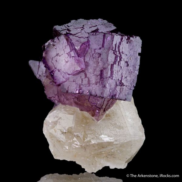 This is a Fluorite on Calcite from Tule Mine, Múzquiz Mun., Coahuila, Mexico. Fluorite that looks like the Borg alien ships from Star Trek, with all of these geometric and patterned outgrowths, is something we see from old finds at the Tule Mine (often referred to merely as "Musquiz" fluorite).Data last checked on 29th Jul 2024 - specimen may no longer be available