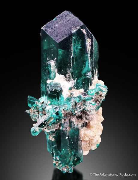 This is a Dioptase from Kaokoveld Plateau, Kunene Region, Namibia. A stunning example of the gem translucent dioptase which came out of several pockets in the Kaokoveld area of Namibia, in modern era.Data last checked on 29th Jul 2024 - specimen may no longer be available