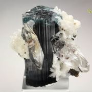 This is a Elbaite Tourmaline from Coronel Murta, Minas Gerais, Brazil. A colorful, stout, gemmy Elbaite Tourmaline crystal that is of an typically complex color palette for old material from the Coronel Murta area of Mines.Data last checked on 26th Aug 2024 - specimen may no longer be available