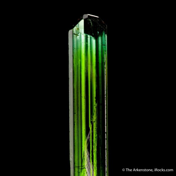 This is a Elbaite Tourmaline from Cruzeiro Mine, Sao Jose da Safira, Minas Gerais, Brazil. From an old collection of tourmalines we obtained, this is a stunning, totally gem and lustrous, rich green Cruzeiro Mine Tourmaline crystal striated parallel to its length, with a complex and perfect termination.Data last checked on 26th Aug 2024 - specimen may no longer be available