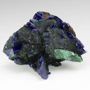 This is a Malachite ps. Azurite on Smithsonite from Sounion Mine #6, Lavrion, Lavreotiki, Attica, Greece. Malachites pseudomorphs after several minerals and crystal styles were an important segment of exciting, recent finds at the Sounion Mine #6 in Lavrion.Data last checked on 26th Aug 2024 - specimen may no longer be available