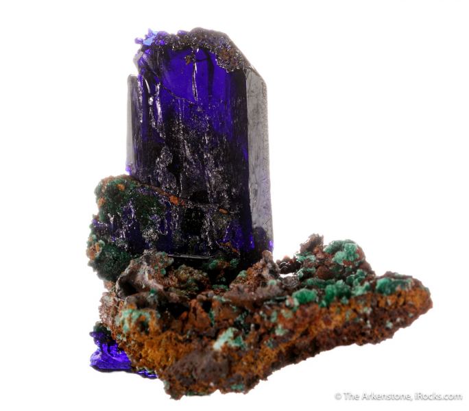 This is a Azurite with Malachite from Christiana Mine, Lavrion, Lavreotiki, Attica, Greece. Sharp and well-defined, this 3.1 cm Azurite blade rises up perfectly from the matrix in this attractive miniature from the Christiana Mine in Lavrion.Data last checked on 26th Aug 2024 - specimen may no longer be available