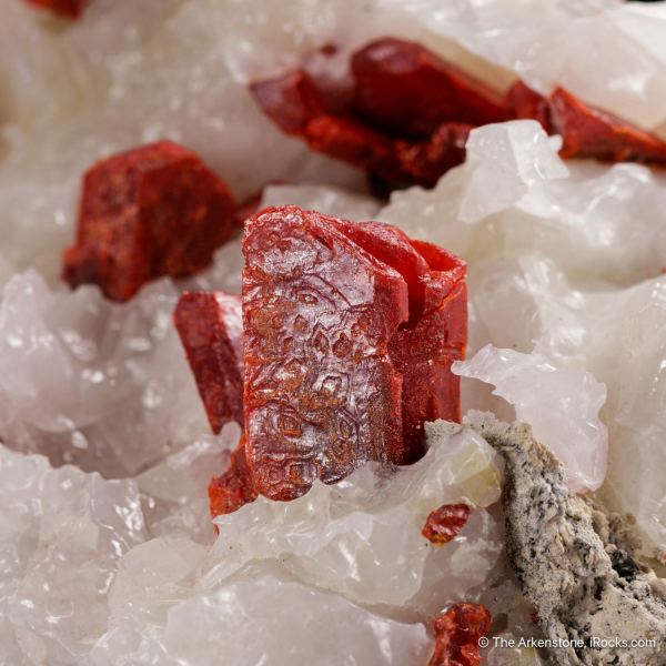 This is a Realgar and Calcite from Getchell Mine, Osgood Mtns., Humboldt Co., Nevada, USA. An old piece, from the 1960s or before, of a rarely seen American classic that most of us will never see in person - an American realgar crystal specimen!Data last checked on 29th Jul 2024 - specimen may no longer be available