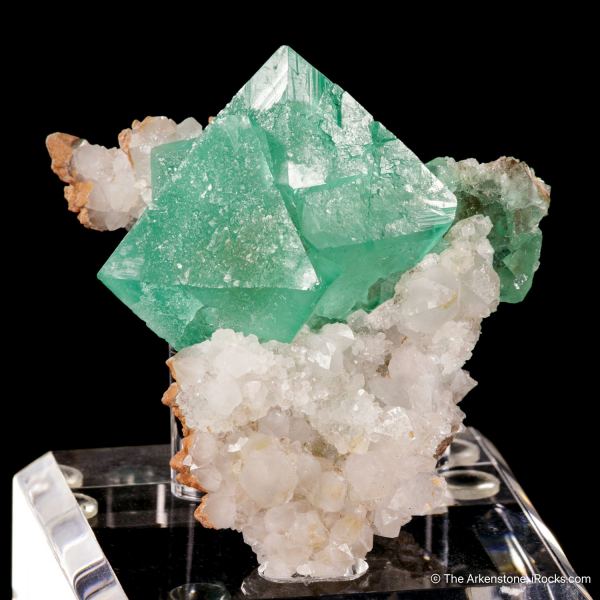 This is a Fluorite on Quartz from Riemvasmaak, Kakamas, Northern Cape, South Africa. From finds of the early 2000s, this is now an antique/classic mineral style, of sharp green octahedral fluorite on contrasting white quartz!Data last checked on 26th Aug 2024 - specimen may no longer be available