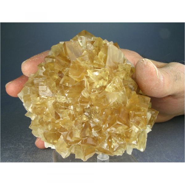 A very colorful specimen from a recent find of gemmy Calcite from the Longyan mine in Fujian, China. It features numerous lustrous, bright canary-yellow Calcite rhombohedrons arranged into the nicely balanced composition pictured. The Calcite is strongly fluorescent, exhibiting different reactions to longwave (next photo) and shortwave UV light (3rd photo), and is also PHOSPHORESCENT under shortwave UV light. In excellent condition, and quite showy for display as shown.Data last checked on 2nd Apr 2024 - specimen may no longer be available