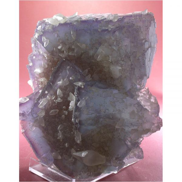 A large and quite impressive specimen of twinned Calcite crystals over cubic Fluorite crystals to 11.2 cm. from Chenzhou in Hunan, China. Excellent presentation for display with lots of attractive details for you to explore all over.Data last checked on 2nd Apr 2024 - specimen may no longer be available