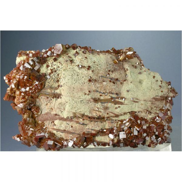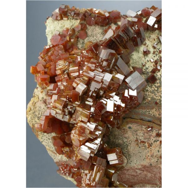 A large and quite beautiful specimen of super-lustrous fire-red Vanadinite crystals from Mibladen, Morocco. It features numerous highly detailed Vanadinite crystals interjoined to create the unique staircase-shaped formation pictured. Great presentation for display and in excellent condition, with lots of fine details for you to explore all over.Data last checked on 2nd Apr 2024 - specimen may no longer be available