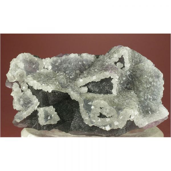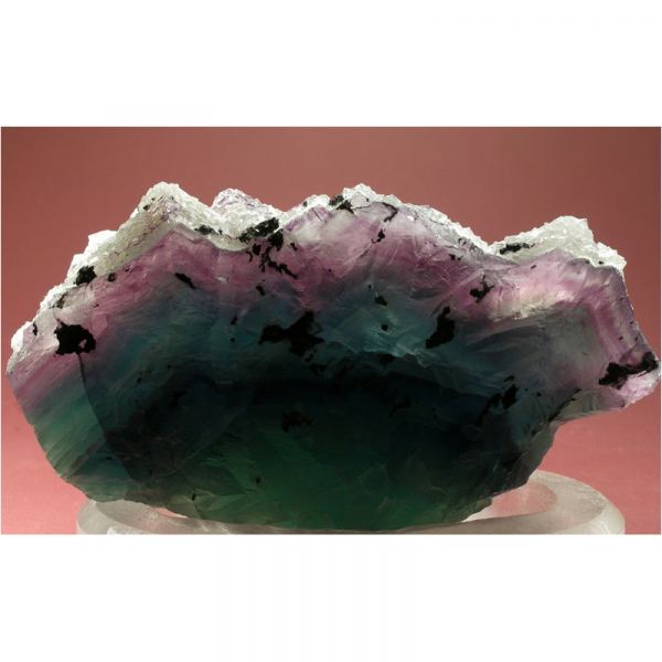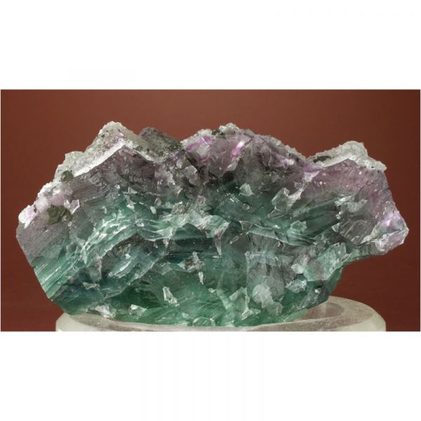 A large and very colorful specimen of Fluorite crystals from De'An in Jiangxi province, China. It features numerous sharply-terminated, green to purple Fluorite octahedrons interjoined to create the nicely balanced formation pictured. A second generation of colorless cubic Fluorite crystals is dusted along the top of the octahedrons as pictured. Backlight reveals the true beauty of this large cabinet-sized specimen: a rich teal-green center with with a coating of rich purple accents above. Loads of fine details for you to explore all over. All in all, a very graceful and colorful composition, worthy of prominent placement in your mineral display cabinet.Data last checked on 2nd Apr 2024 - specimen may no longer be available