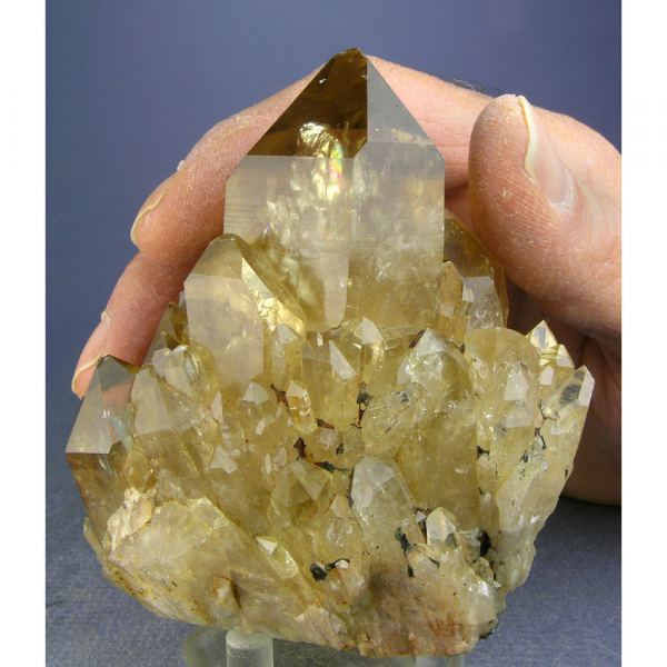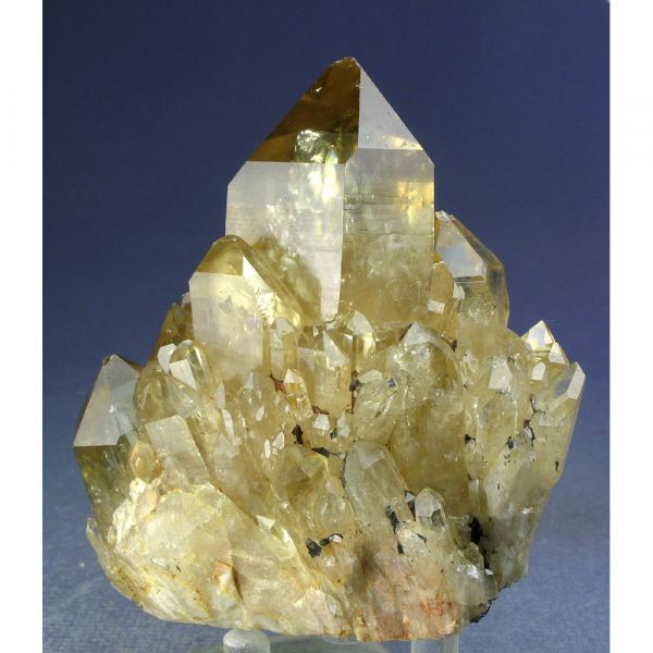 A very colorful and quite beautiful, NATURAL (untreated) Citrine Quartz crystal group from the Congo. It features a cluster of GEMMY golden Citrine crystals that exhibit the lovely yellow color that this very uncommon variety of Quartz is famous for. A couple of small chips but in excellent condition for this material. Nice views around all sides, with lots of fine details for you to explore all over.Data last checked on 2nd Apr 2024 - specimen may no longer be available