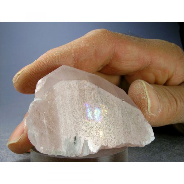 A large and quite beautiful 82 gram crystal of gemmy pink Morganite from Dara-e-Pech in Afghanistan. Lots of fine details for you to explore all over and it even contains a RAINBOW! Data last checked on 2nd Apr 2024 - specimen may no longer be available
