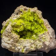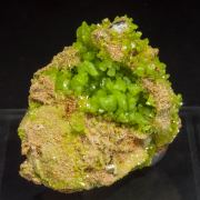 This is a Pyromorphite from San Andres Mine, Villaviciosa, Cordoba, Spain. NEON green crystal groups aesthetically arranged on a limonite matrix.Data last checked on 26th Aug 2024 - specimen may no longer be available