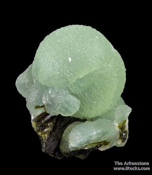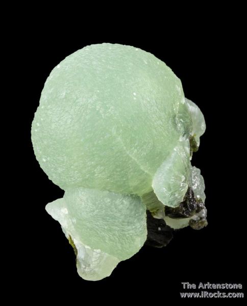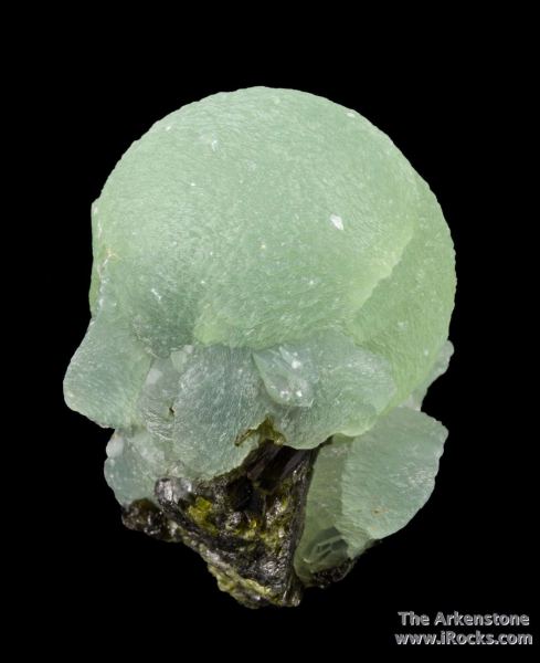 This is a Prehnite on Epidote from Diakon, Cercle de Boufalabe, Kayes Region, Mali. An elegant miniature topped off by a 3 cm across, botryoid of lustrous and translucent, apple green prehnite.Data last checked on 26th Aug 2024 - specimen may no longer be available