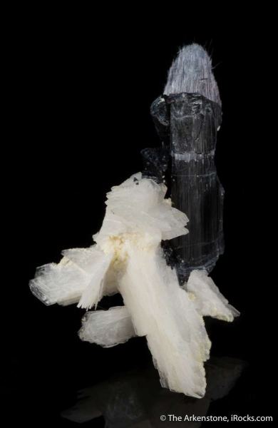 This is a Bertrandite with Tourmaline from Golconda Mine, Governador Valadares, Minas Gerais, Brazil. An astonishing and unusual pegmatite combination piece of bertrandite and tourmaline var.Data last checked on 26th Aug 2024 - specimen may no longer be available