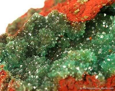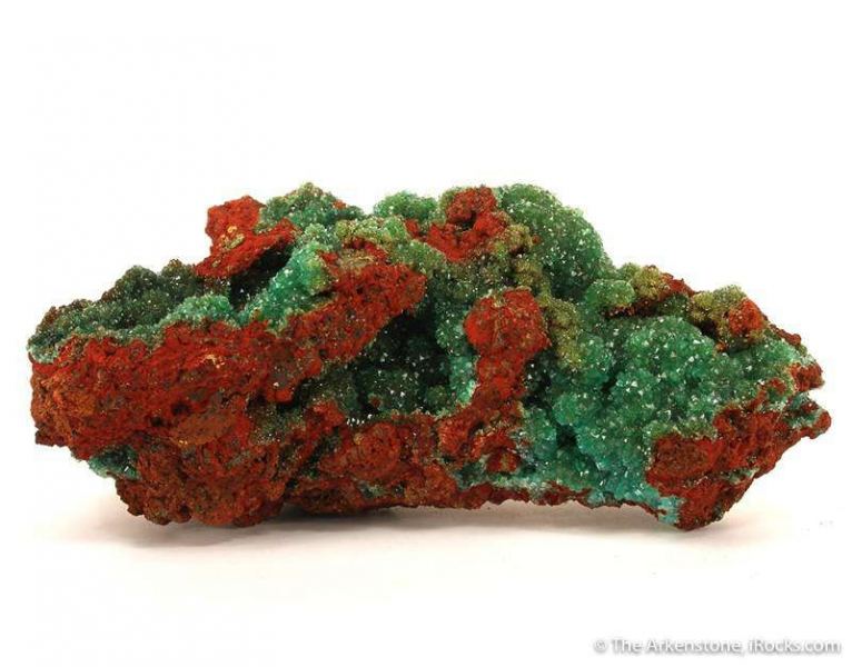 This is a Cuprian Adamite from Ojuela Mine, Mapimi, Durango, Mexico. A vuggy, multi layered, ocherous limonite has been filled with rosettes of sparkling, dark lime green cuproadamite crystals of small size but high sugary brilliance.Data last checked on 26th Aug 2024 - specimen may no longer be available