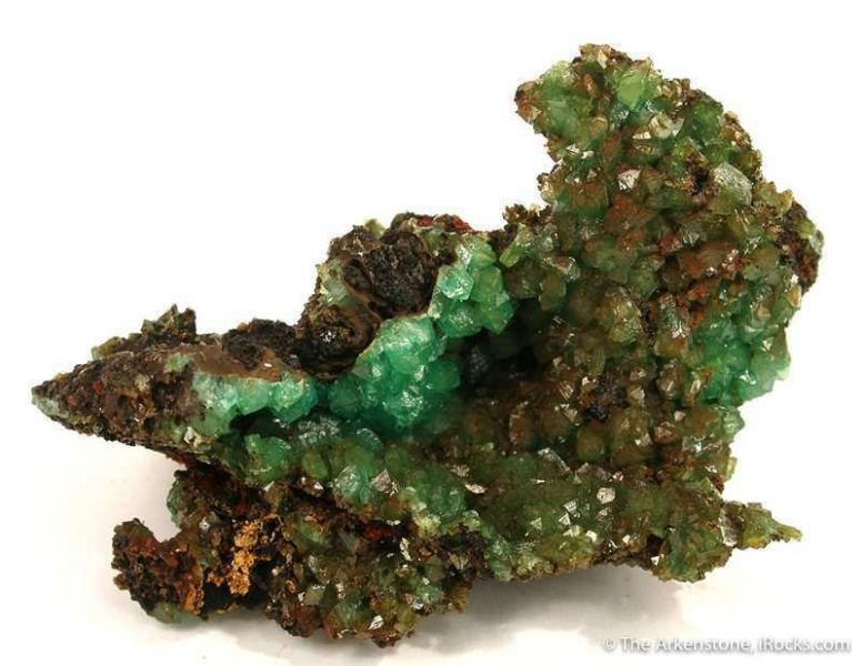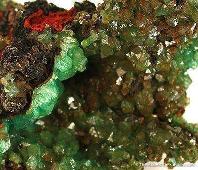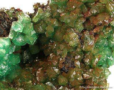 This is a Cuprian Adamite from Ojuela Mine, Mapimi, Durango, Mexico. A crust of sparkling, glassy and translucent, emerald-green crystals of cuproadamite, line the interior of a limonite vug.Data last checked on 26th Aug 2024 - specimen may no longer be available