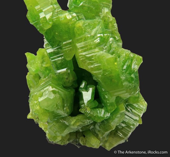 This is a Pyromorphite (large, hoppered crystals) from Daoping Mine, Gongcheng Co., Guilin, Guangxi, China. Daoping is renowned for its superb Pyromorphites, and this complex cluster more than holds up its end of that bargain in terms of reputation.Data last checked on 26th Aug 2024 - specimen may no longer be available