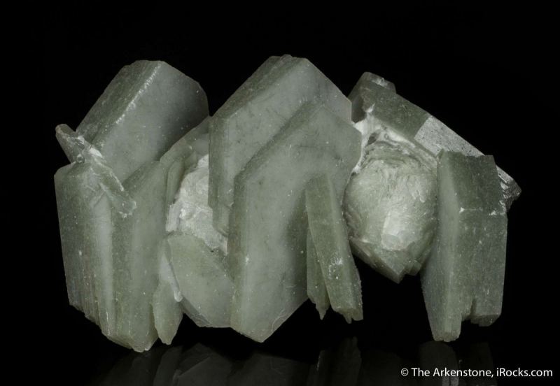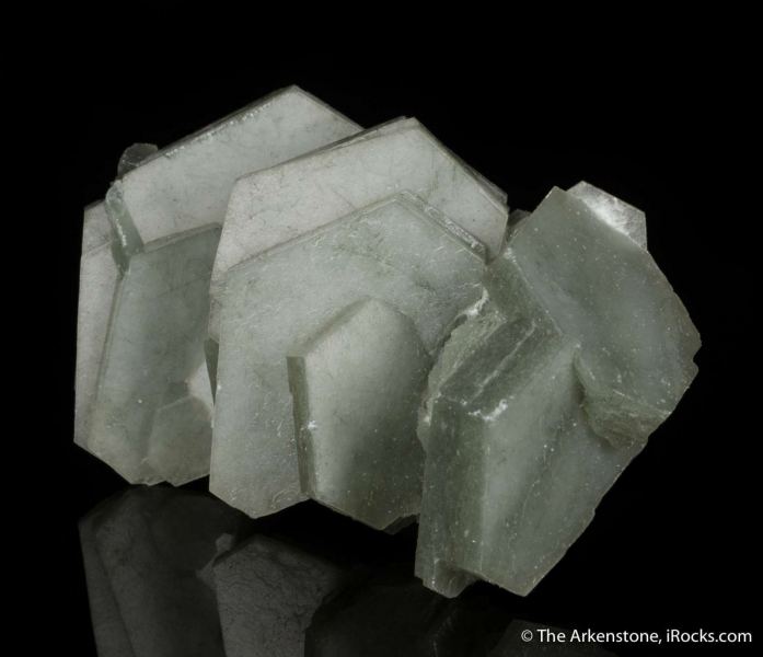 This is a Calcite included by Hedenbergite from Huanggang Mines, Hexigten Banner, Inner Mongolia A.R. China. This intergrown cluster of doubly terminated, tabular crystals to 5 cm across looks more like a modern sculpture of metal than a crystal cluster.Data last checked on 26th Aug 2024 - specimen may no longer be available