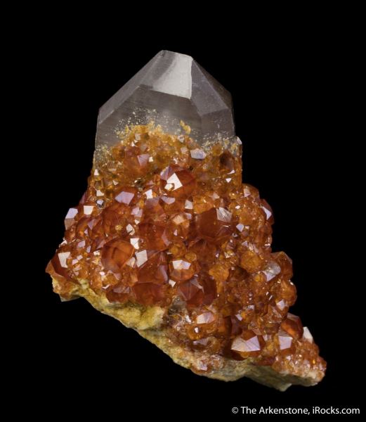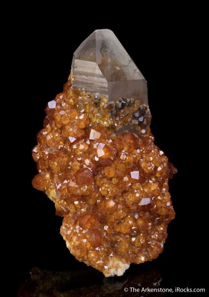 This is a Spessartine on Smoky Quartz from Wushan Spessartine Mine, Tongbei, Yunxiao Co., Fujian Province, China. A striking, terminated smoky quartz crystal cloaked with gemmy and lustrous, cinnamon-orange spessartine garnet crystals from the good finds at the Wushan spessartine mine.Data last checked on 26th Aug 2024 - specimen may no longer be available
