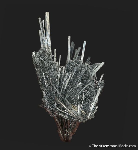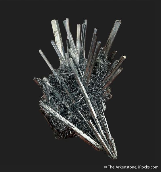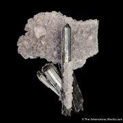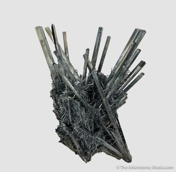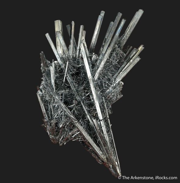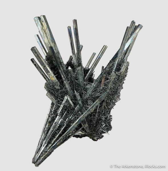This is a Stibnite from Xikuangshan Sb deposit, Lengshuijiang Co., Loudi, Hunan, China. Beautiful and delicate, this Stibnite from a more uncommon locality in China has a distinct combination of two generations of crystals and combines long, slender crystals with tiny, hair-like needles of Stibnite.Data last checked on 26th Aug 2024 - specimen may no longer be available