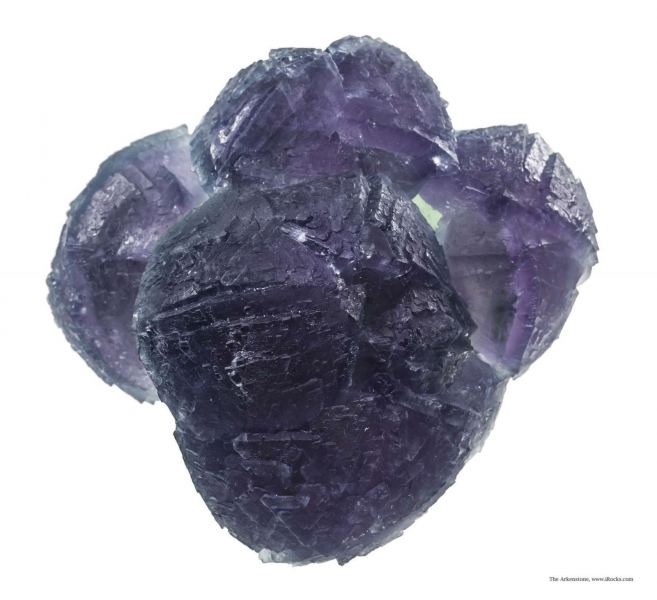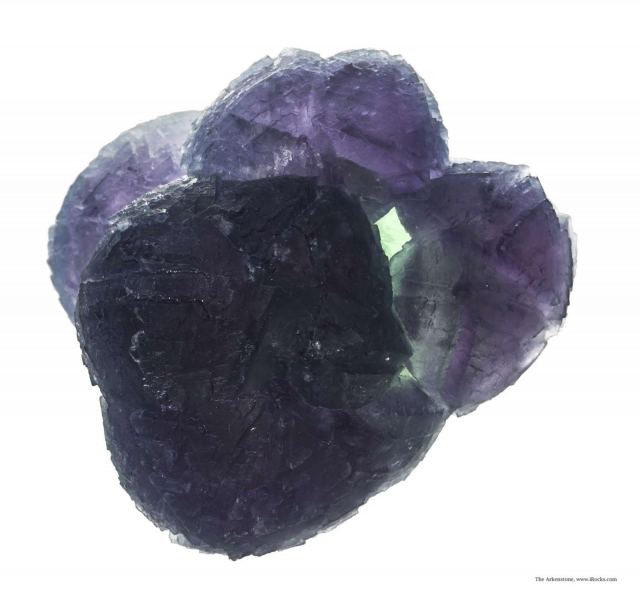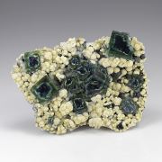 This is a Fluorite on Fluorite from De'An Fluorite Mine, Wushan, De'An Co., Jiujiang, Jiangxi Prov., China. Graceful, curving purple fluorites to 4 cm on edge and to 5 cm across "gently" drape over the top of a robust, deep green, 5-cm-across "ball" of crystallized green fluorites (which is itself made of heavily stepped and modified cuboctahedra) on this special, complete-all-around specimen.Data last checked on 26th Aug 2024 - specimen may no longer be available