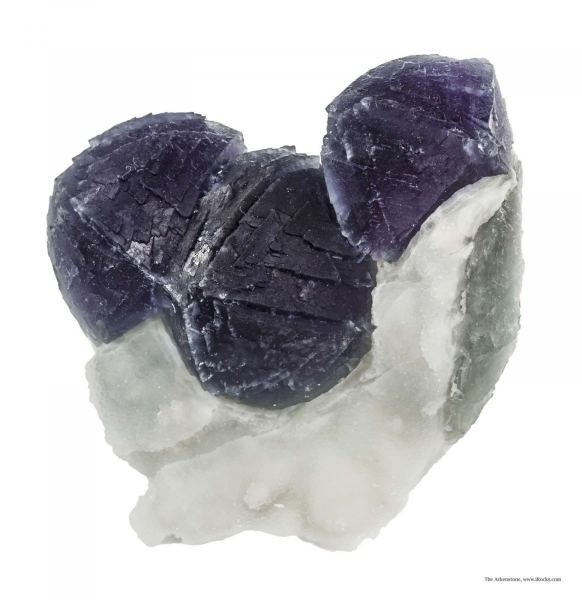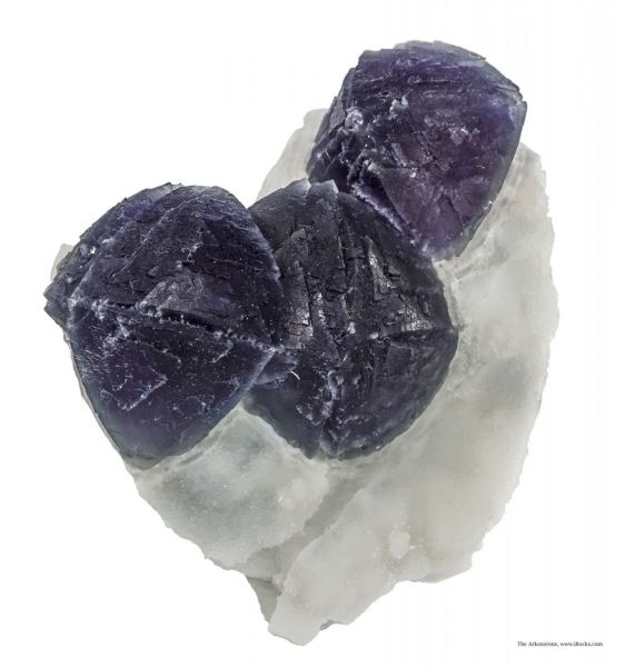 This is a Fluorite on Fluorite from De'An Fluorite Mine, Wushan, De'An Co., Jiujiang, Jiangxi Prov., China. This unusual specimen features isolated 3-dimensional crystals of steeply curved fluorite octohedra, to 4 cm across, perched on a sugary, sparkling white quartz matrix that overlays a thin rind of green fluorite.Data last checked on 26th Aug 2024 - specimen may no longer be available