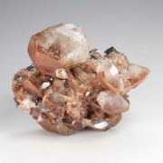 This is a Genthelvite With Calcite from Huanggangliang mine, Keshiketeng Qi, Chifeng city, Inner Mongolia, China. A sharp specimen of superb genthelvite crystals of a translucent red-amber color, to 1.6 cm, in a beautiful matrix of calcite.Data last checked on 26th Aug 2024 - specimen may no longer be available