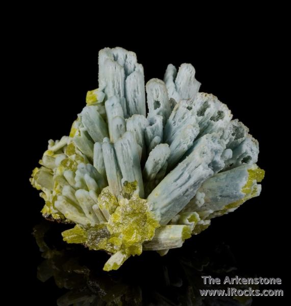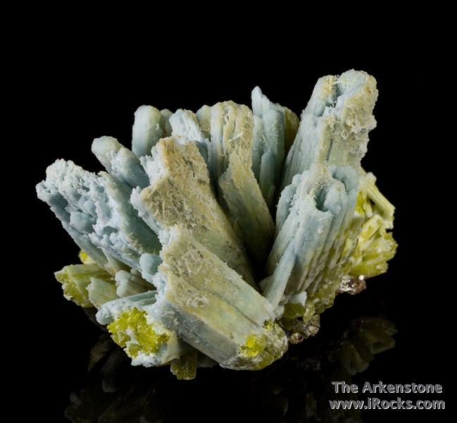 This is a Plumbogummite ps Pyromorphite from Yangshuo Mine, Yangshuo Co., Guilin Pref., Guangxi Zhuang, China. A thin crust of gossan matrix is host to a slightly divergent cluster of sky blue plumbogummite crystals, to 3 cm in length, that have mostly replaced pyromorphite.Data last checked on 26th Aug 2024 - specimen may no longer be available
