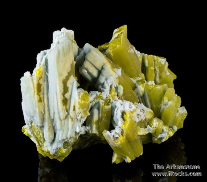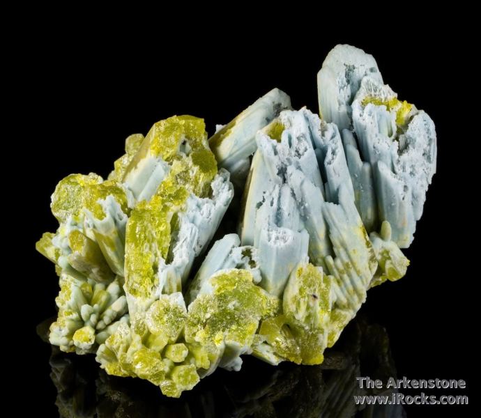 This is a Plumbogummite replacing Pyromorphite from Yangshuo Mine, Yangshuo Co., Guilin Pref., Guangxi Zhuang, China. This specimen is one of the few showing barely any replacement and mostly original pyromorphite is present: Partial pseudomorphs of plumbogummite after pyromorphite in crystals to 4.7 cm in length exhibit cavernous growth at the terminations and contrast with the display side which is colored a sky blue color.Data last checked on 26th Aug 2024 - specimen may no longer be available
