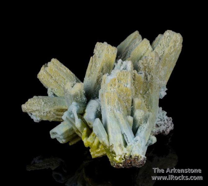 This is a Plumbogummite ps Pyromorphite from Yangshuo Mine, Yangshuo Co., Guilin Pref., Guangxi Zhuang, China. A special piece with flower-like, delicate aesthetics to the elongated plumbogummite after pyromorphite crystals.Data last checked on 26th Aug 2024 - specimen may no longer be available