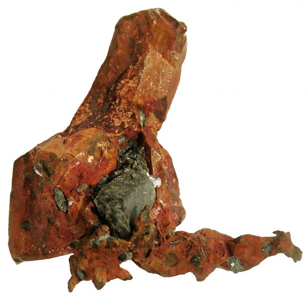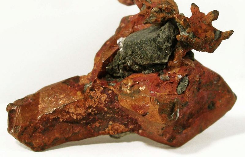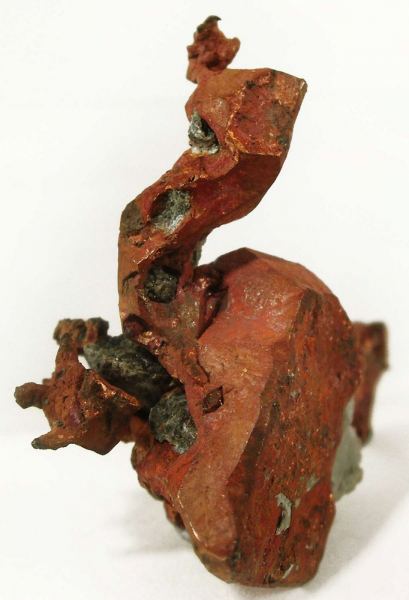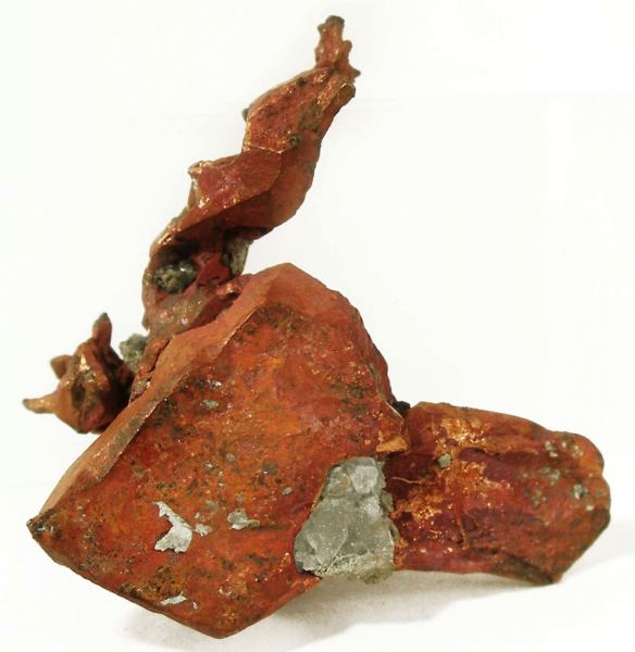 This is a Copper from Central Mine, Keweenaw County, Michigan, USA. Perched aesthetically on the legs of two smaller crystals is a superbly formed, doubly terminated, 2 cm tall crystal of slightly lustrous, richly colored copper.Data last checked on 26th Aug 2024 - specimen may no longer be available