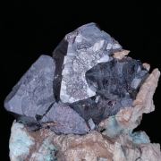 Cuprite (gemmy red crystals) on Chrysocolla / Mashamba West Mine, Kolwezi mining district, Lualaba, DR Congo