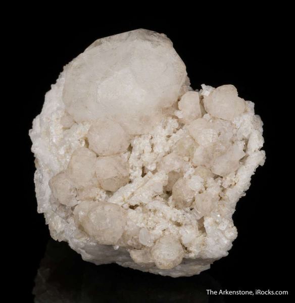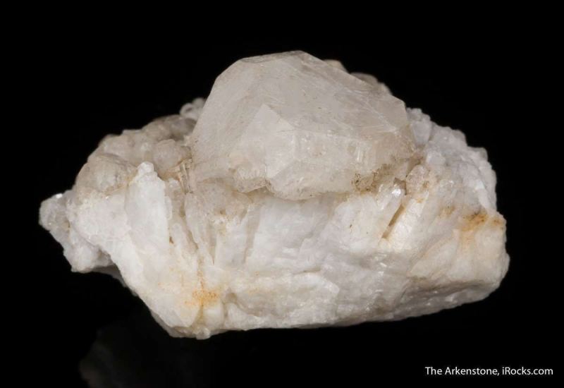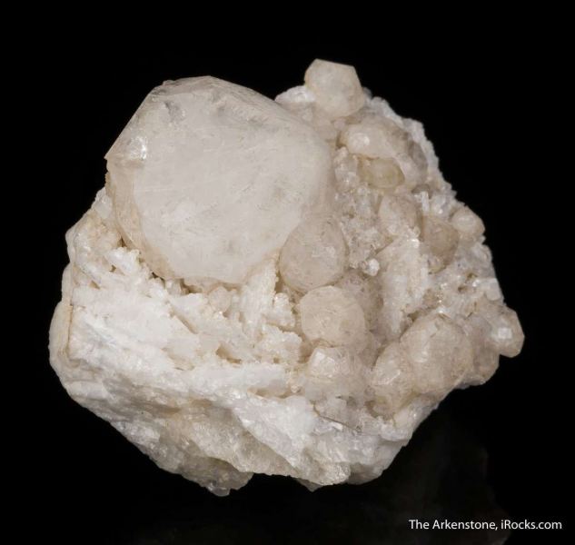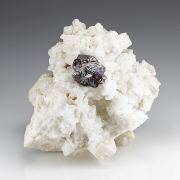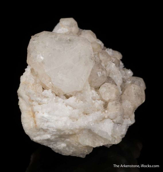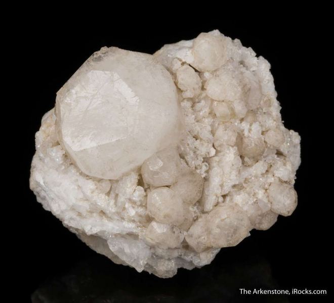 This is a Pollucite with Albite from Shigar Valley, Skardu District, Baltistan, Northern Areas, Pakistan. Perched aesthetically atop an albite matrix and wreathed around the base by smaller crystals, is a fairly equant, lustrous and translucent, colorless pollucite crystal measuring 2 cm in length.Data last checked on 26th Aug 2024 - specimen may no longer be available