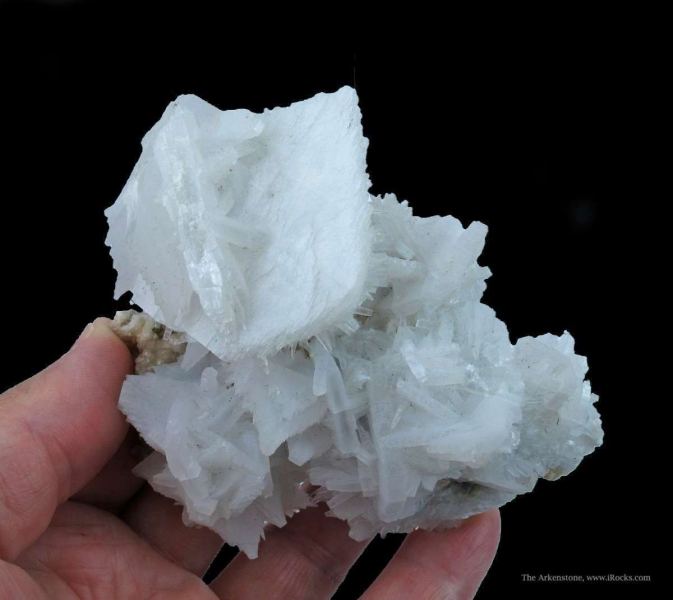 This is a Anhydrite and Calcite from Campiano Mine, Montieri, Grosseto Province, Tuscany, Italy. A choice cluster of bladed Anhydrite crystals from the Campiano Mine in Tuscany (probably from finds in the 1970s).Data last checked on 26th Aug 2024 - specimen may no longer be available