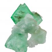 This is a Fluorite on Quartz from Riemvasmaak, Northern Cape Province, South Africa. Aesthetically perched high atop a matrix of lustrous and translucent, colorless, stubby quartz crystals, to 1.7 cm in length, are two VERY sharp octohedrons of lustrous and translucent, rich emerald green fluorite to 2.4 cm on an edge.Data last checked on 26th Aug 2024 - specimen may no longer be available