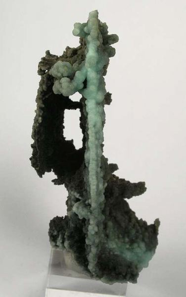 This is a Gibbsite from Xianghualing polymetallic ore field, Chenzhou Prefecture, Hunan Province, China. Thin, lightweight, box-work septae, is the host for botryoidal aggregates of green gibbsite, to .5 cm across.Data last checked on 26th Aug 2024 - specimen may no longer be available